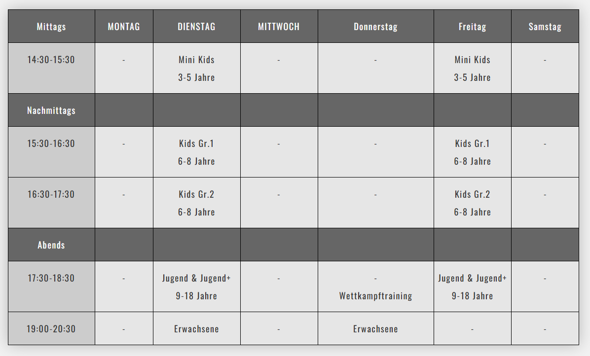 Unser wöchentlicher Trainingsplan für Tübingen und Pfullingen